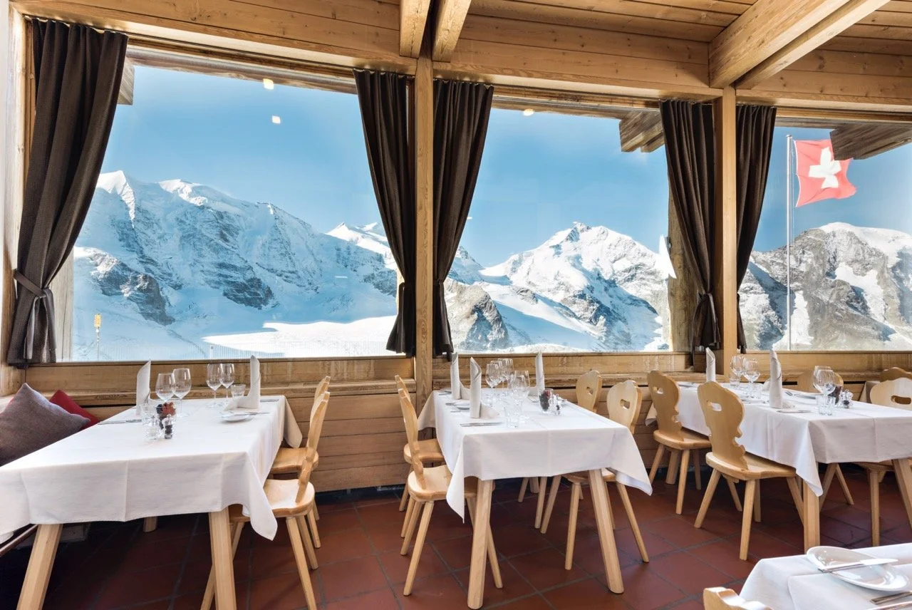 供應瑞士傳統美食,可俯瞰整片伯爾尼納山脈。也供住宿與 Jacuzzi,可選擇過夜享受寧靜高山夜。在近 3,000 m 高空享受美景與溫泉。